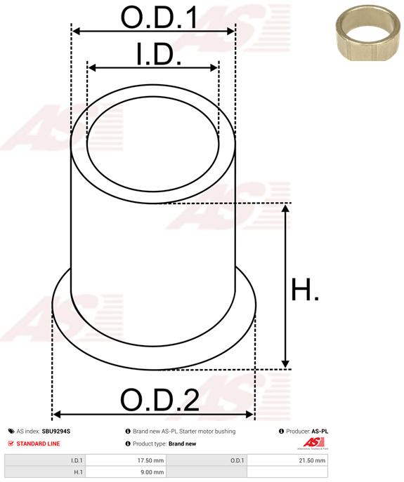 | Inside Diameter (I.D.1) | 17.50 mm |