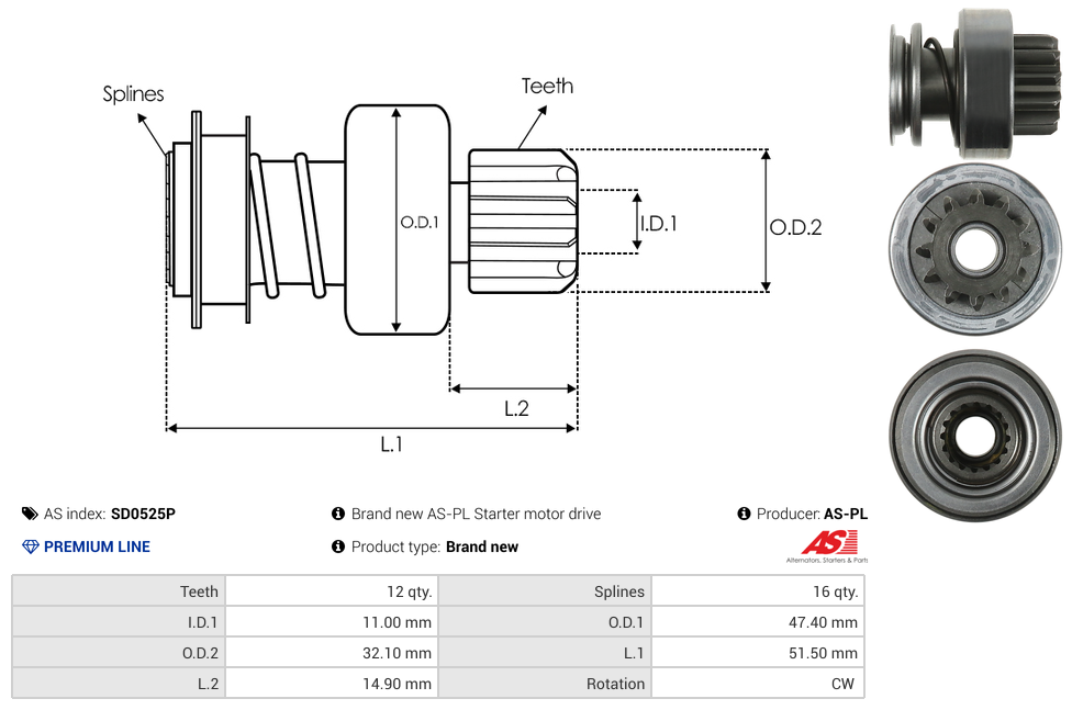 | No./Splines | 16 qty |