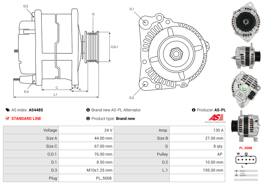 | Pulley Outside Diameter (O.D.1) | 76 mm |