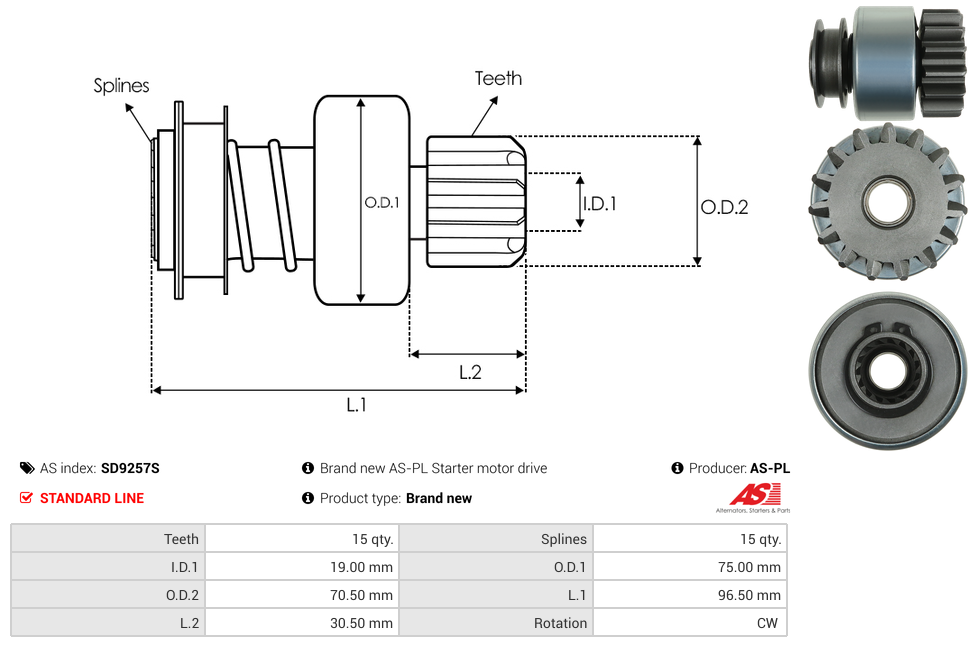 | No./Splines | 15 qty |