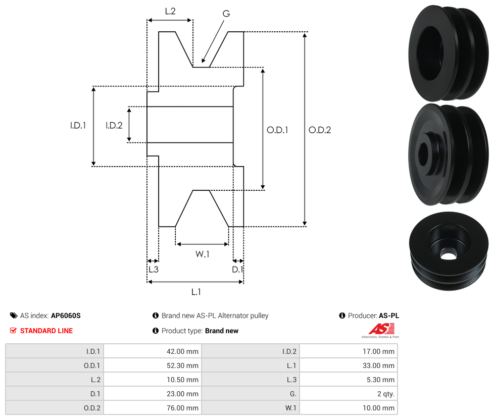 | Pulley Grooves | 2 qty |