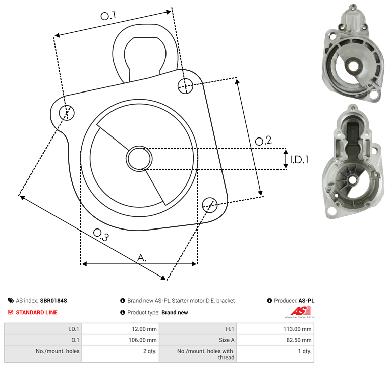 | Mount Hole Center - Center (O.1) | 106 mm |