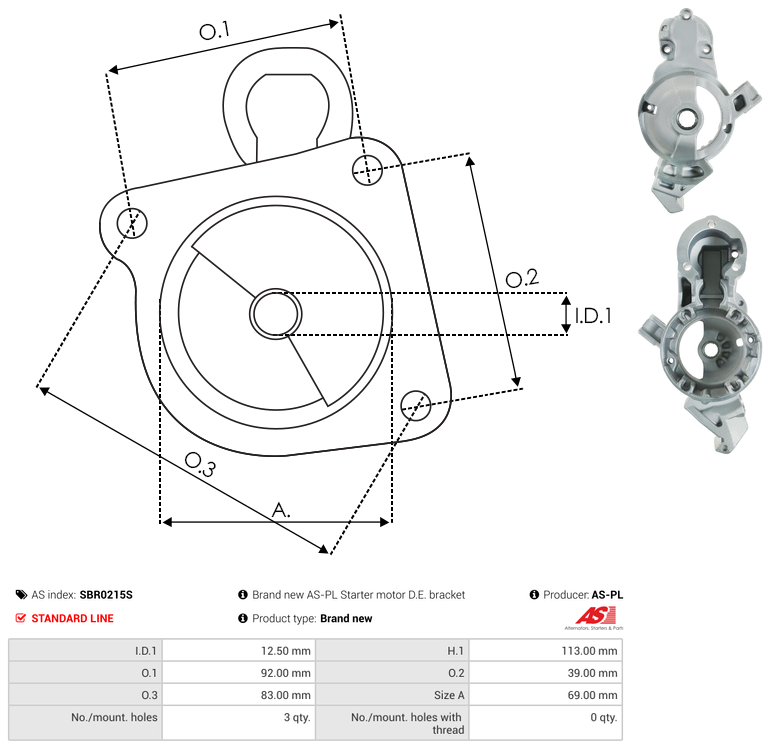 SBR0215S - Brand new AS-PL Starter motor D.E. bracket
