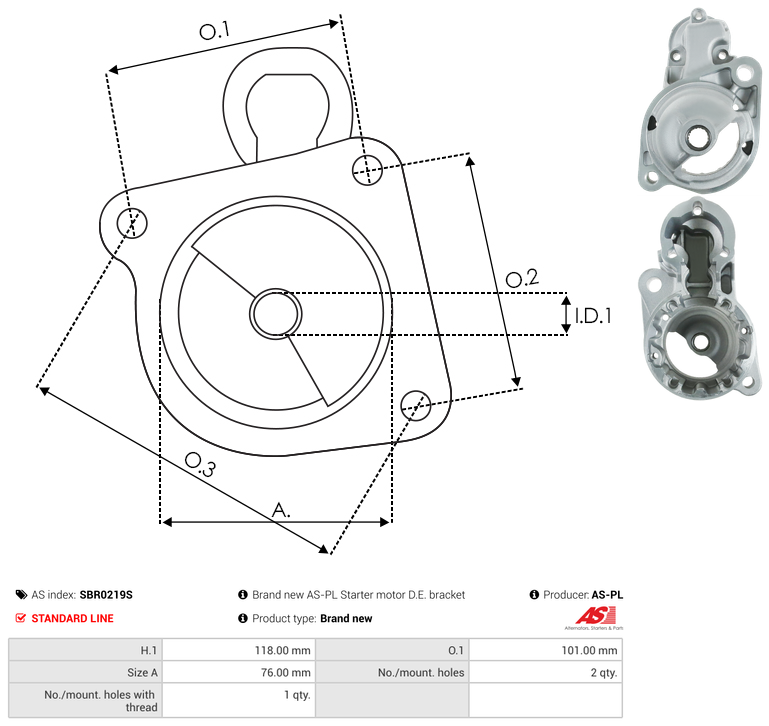 | No./Mount holes | 2 qty |