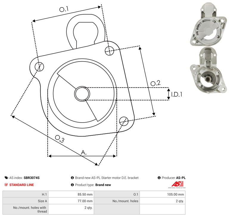 | Mount Hole Center - Center (O.1) | 105 mm |