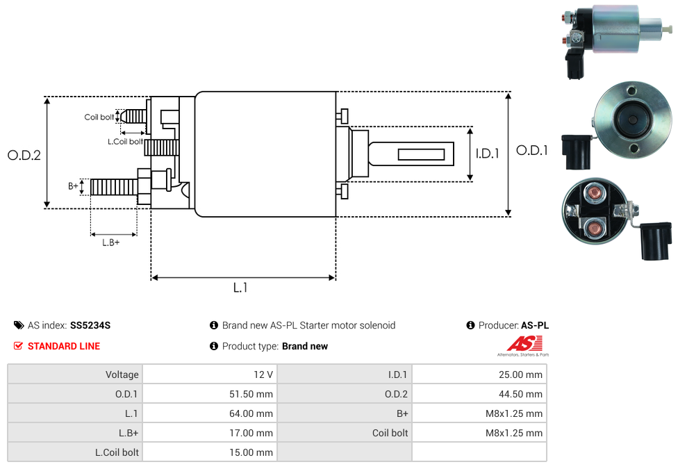 | B+ Stud Diameter & Thread Pitch (B+) | M8x1.25 mm |