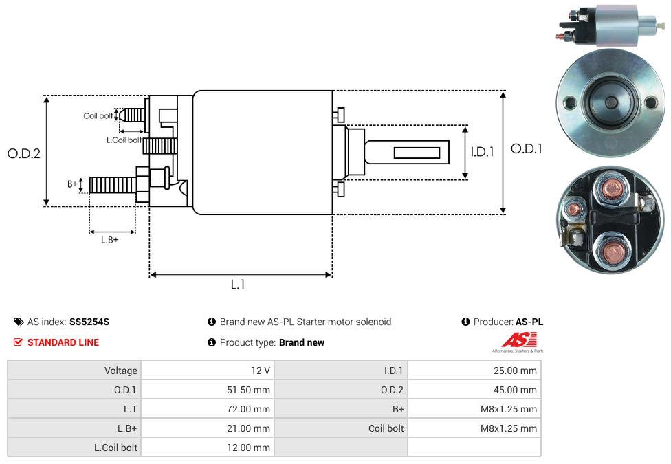| B+ Stud Diameter & Thread Pitch (B+) | M8x1.25 mm |