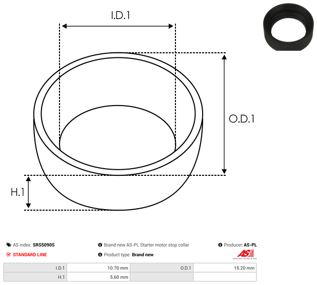 | Inside Diameter (I.D.1) | 10.70 mm |