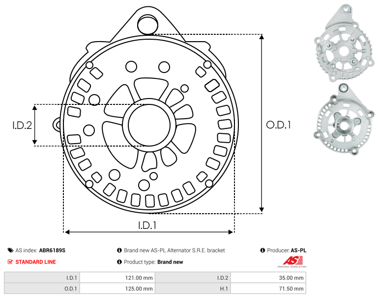 | Inside Diameter (I.D.1) | 121 mm |