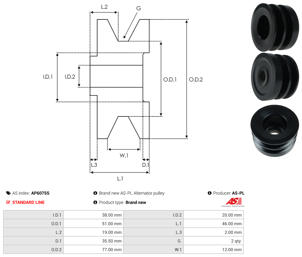 | Pulley Grooves | 2 qty |