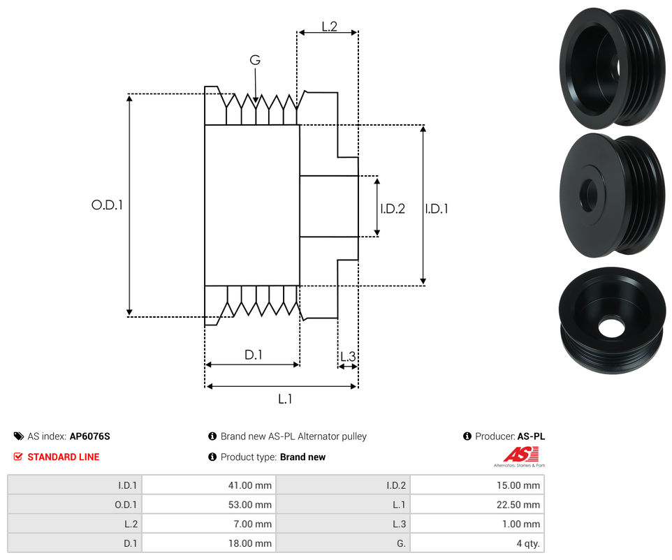 | Pulley Grooves | 4 qty |