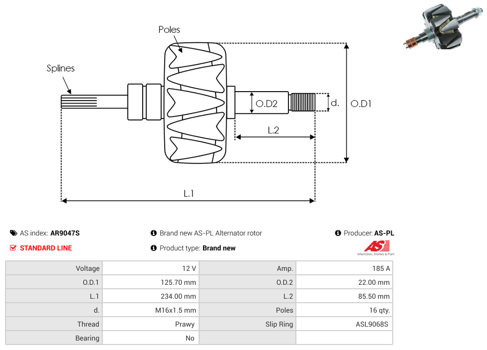 | Thread size & pitch (d.) | M16x1.5 mm |