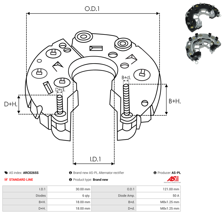 | B+ Stud Diameter & Thread Pitch (B+d) | M8x1.25 mm |