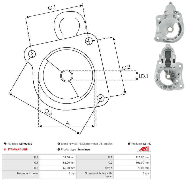 | No./Mount holes | 3 qty |