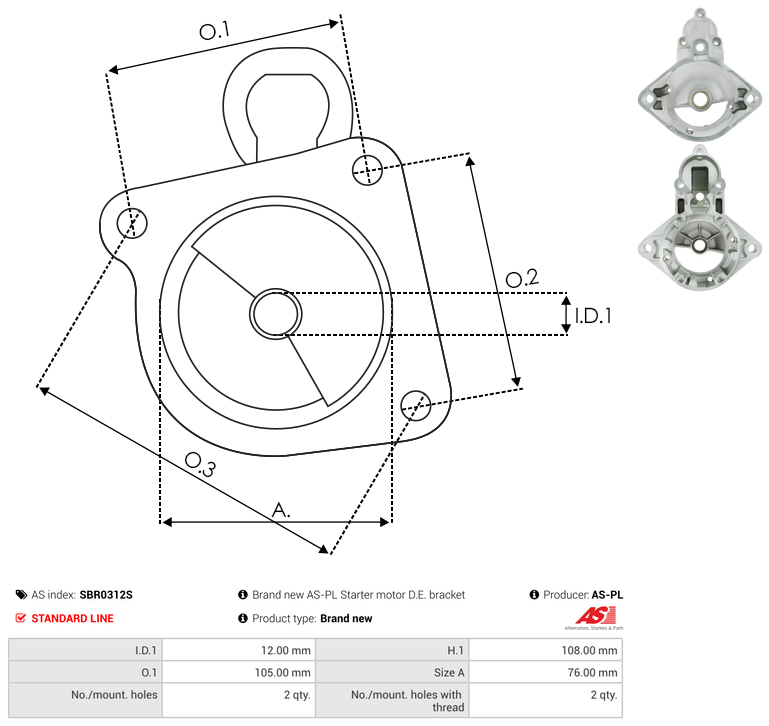 | Mount Hole Center - Center (O.1) | 105 mm |