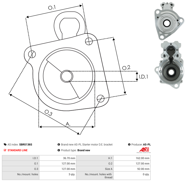 | Mount Hole Center - Center (O.2) | 127 mm |