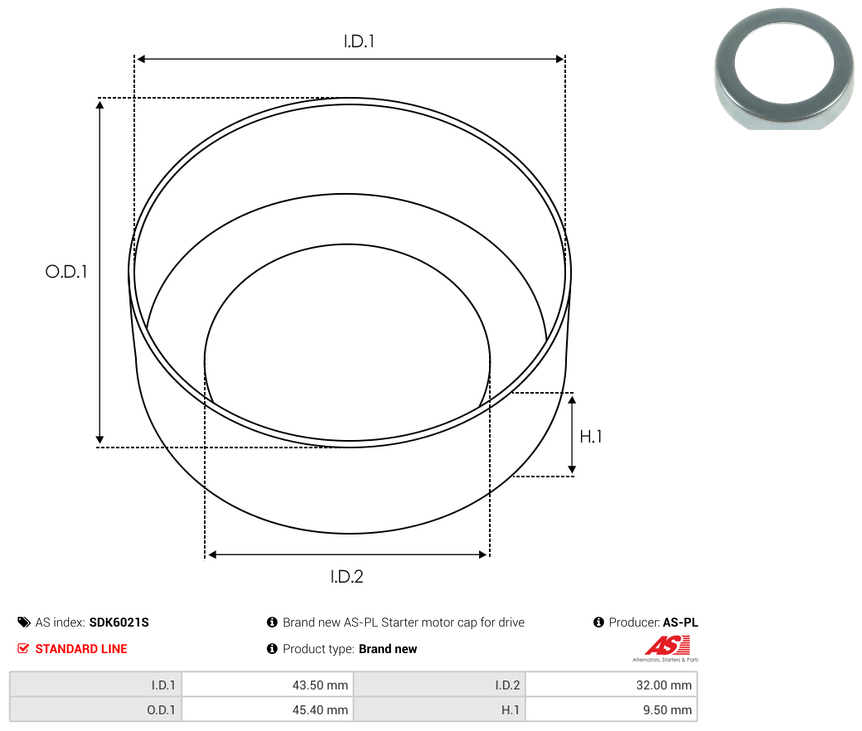 | Inside Diameter (I.D.1) | 43.50 mm |