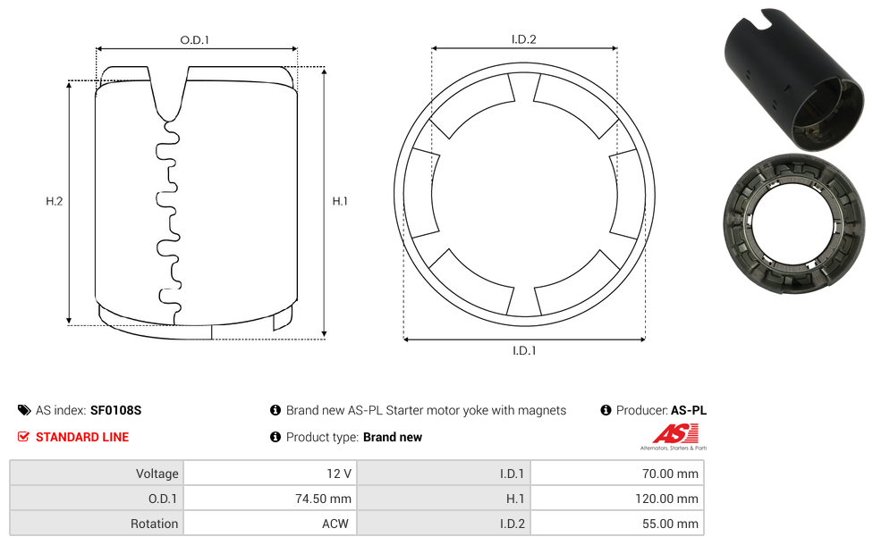 SF0108S - Brand new AS-PL Starter motor yoke with magnets