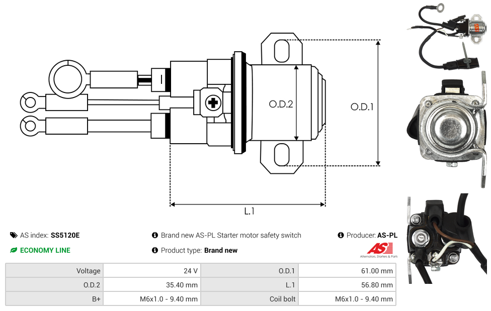 | B+ Stud Diameter & Thread Pitch (B+) | M6x1.0 - 9.40 mm |