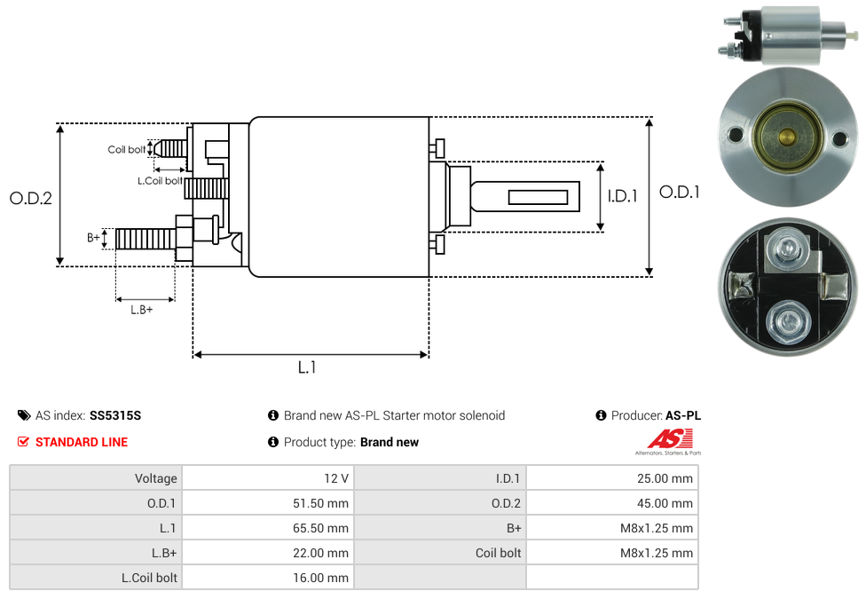 | B+ Stud Diameter & Thread Pitch (B+) | M8x1.25 mm |