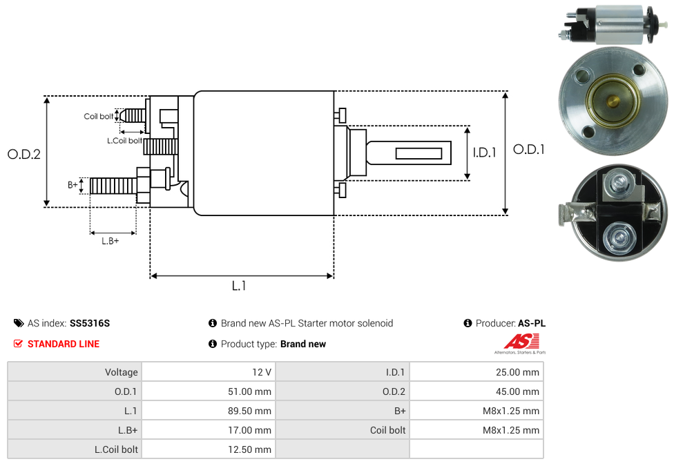 | B+ Stud Diameter & Thread Pitch (B+) | M8x1.25 mm |