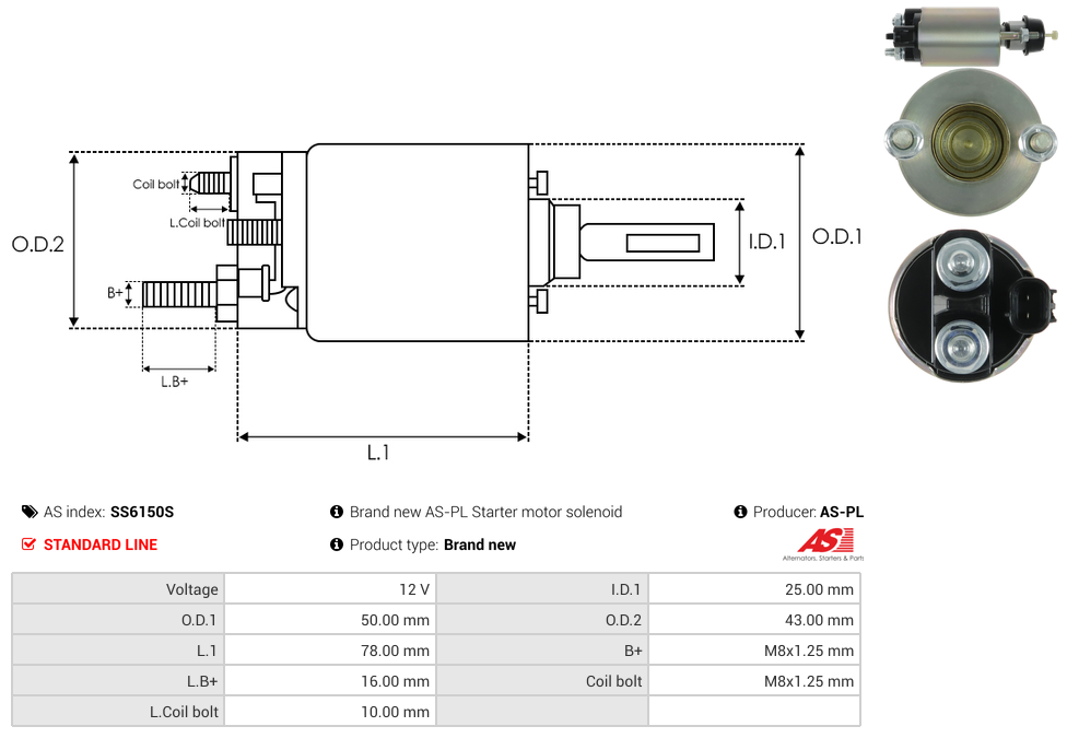 | B+ Stud Diameter & Thread Pitch (B+) | M8x1.25 mm |