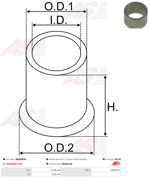 | Inside Diameter (I.D.1) | 10.50 mm |