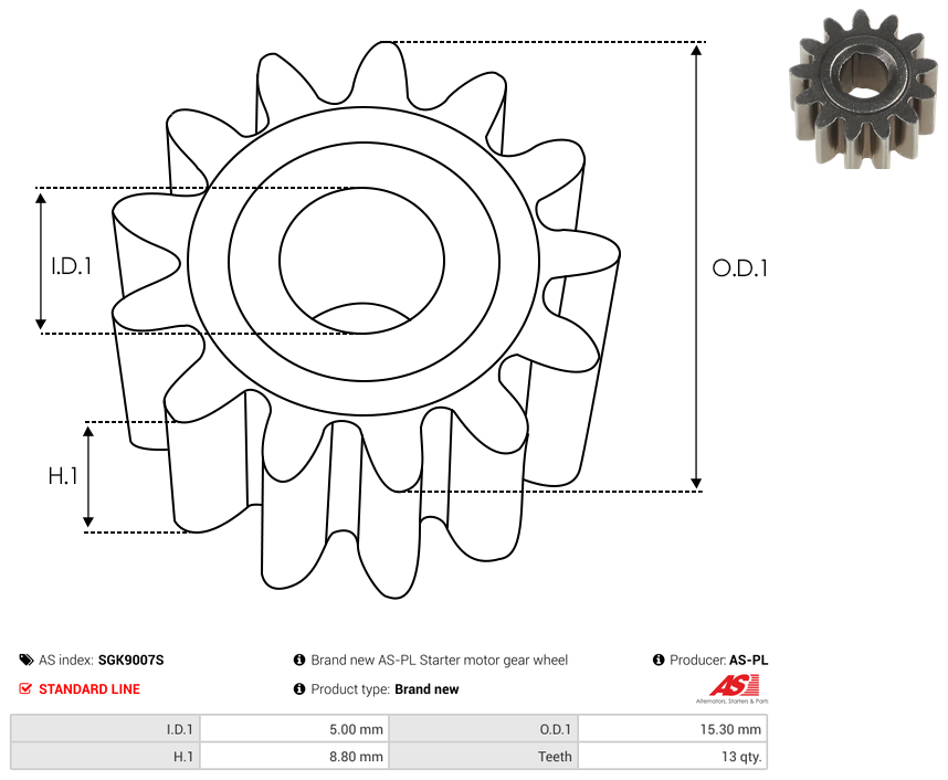 | Outside Diameter (O.D.1) | 15.30 mm |