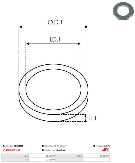 | Inside Diameter (I.D.1) | 10.50 mm |