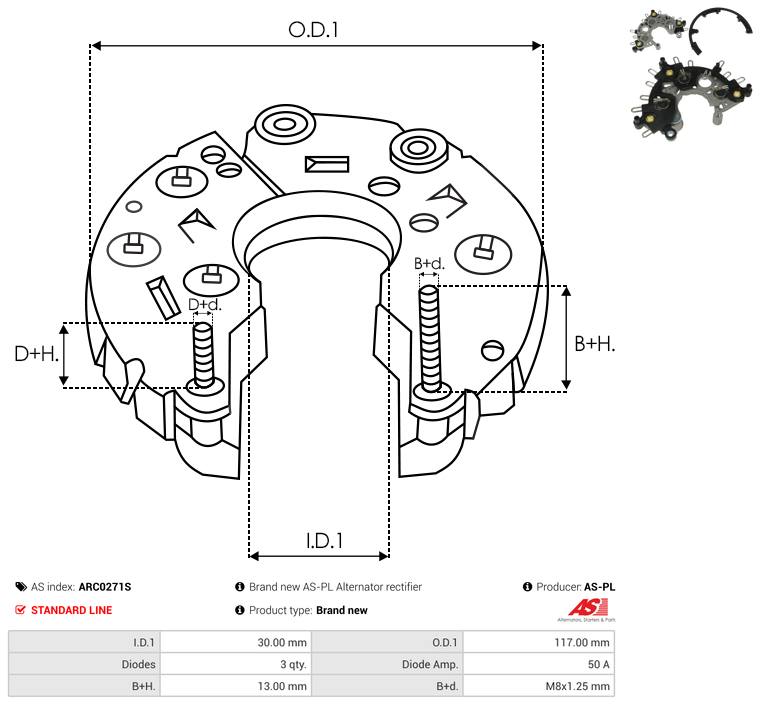 | B+ Stud Diameter & Thread Pitch (B+d) | M8x1.25 mm |