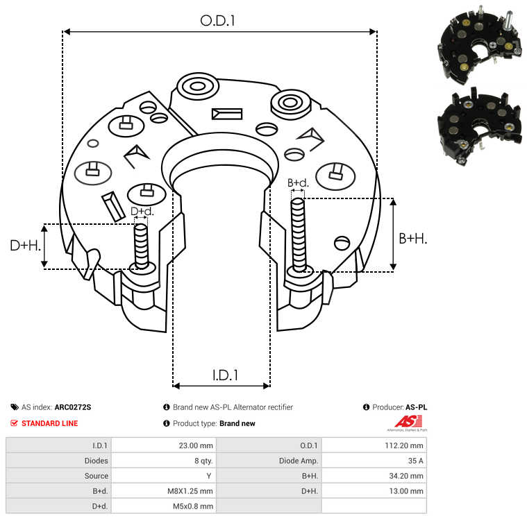 | B+ Stud Diameter & Thread Pitch (B+d) | M8X1.25 mm |