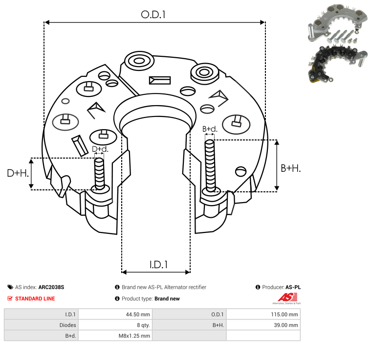 | B+ Stud Diameter & Thread Pitch (B+d) | M8x1.25 mm |