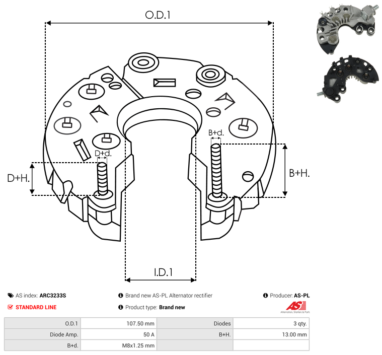 | B+ Stud Diameter & Thread Pitch (B+d) | M8x1.25 mm |
