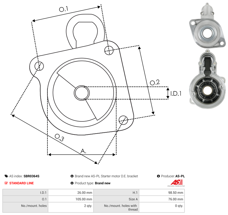 | Mount Hole Center - Center (O.1) | 105 mm |