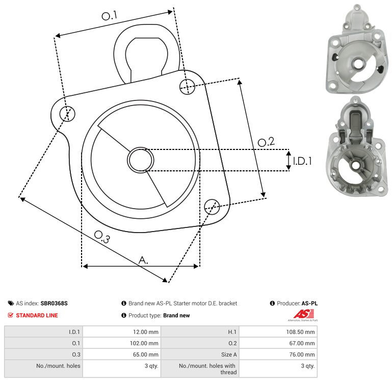 | No./Mount holes | 3 qty |