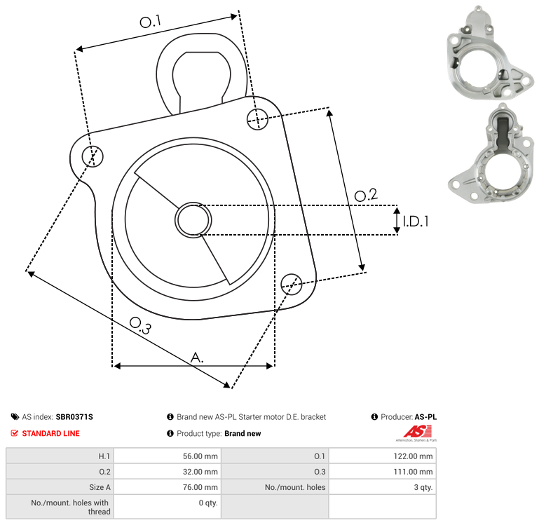 | Mount Hole Center - Center (O.3) | 111 mm |