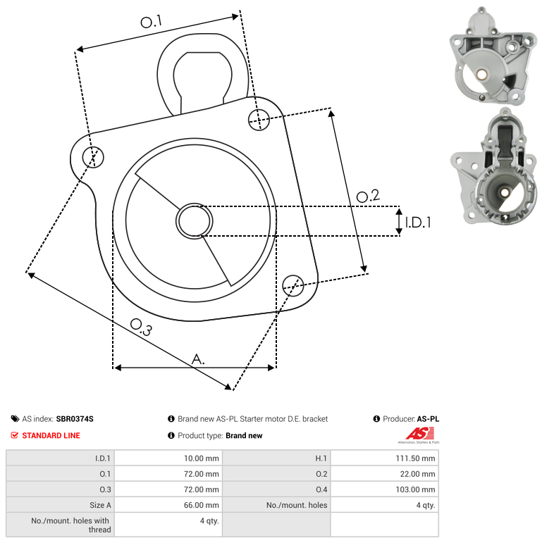 | Mount Hole Center - Center (O.1) | 72 mm |