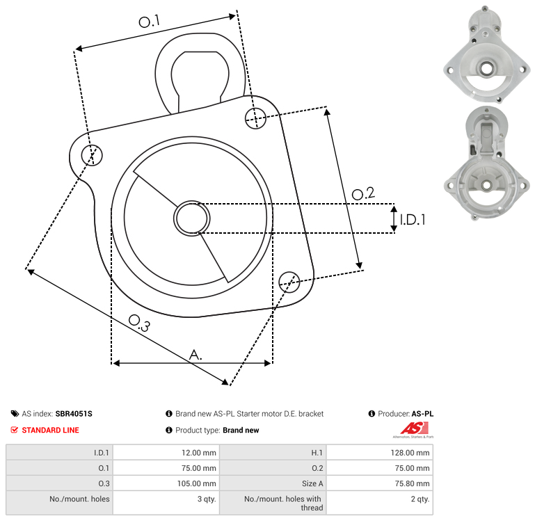 | No./Mount holes | 3 qty |