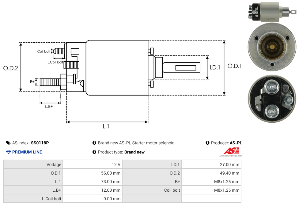 | B+ Stud Diameter & Thread Pitch (B+) | M8x1.25 mm |