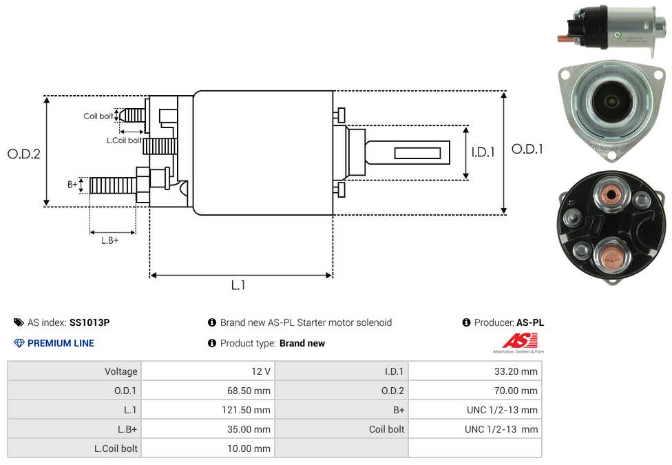| B+ Stud Diameter & Thread Pitch (B+) | UNC 1/2-13 mm |