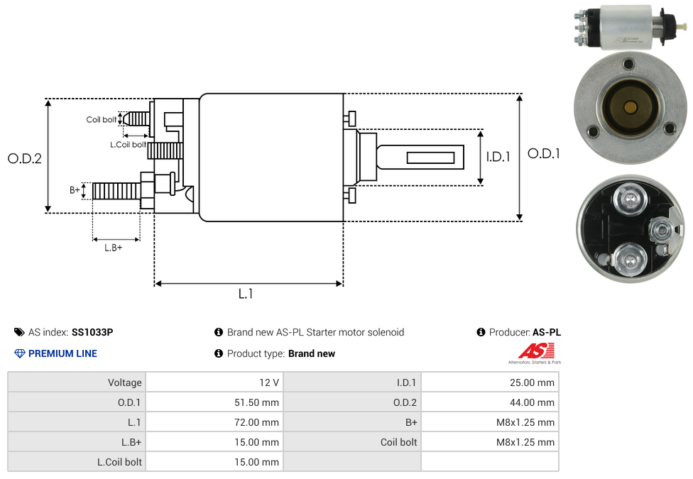 | B+ Stud Diameter & Thread Pitch (B+) | M8x1.25 mm |