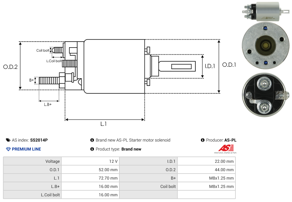 | B+ Stud Diameter & Thread Pitch (B+) | M8x1.25 mm |