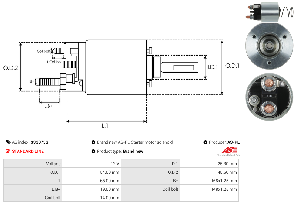 | B+ Stud Diameter & Thread Pitch (B+) | M8x1.25 mm |