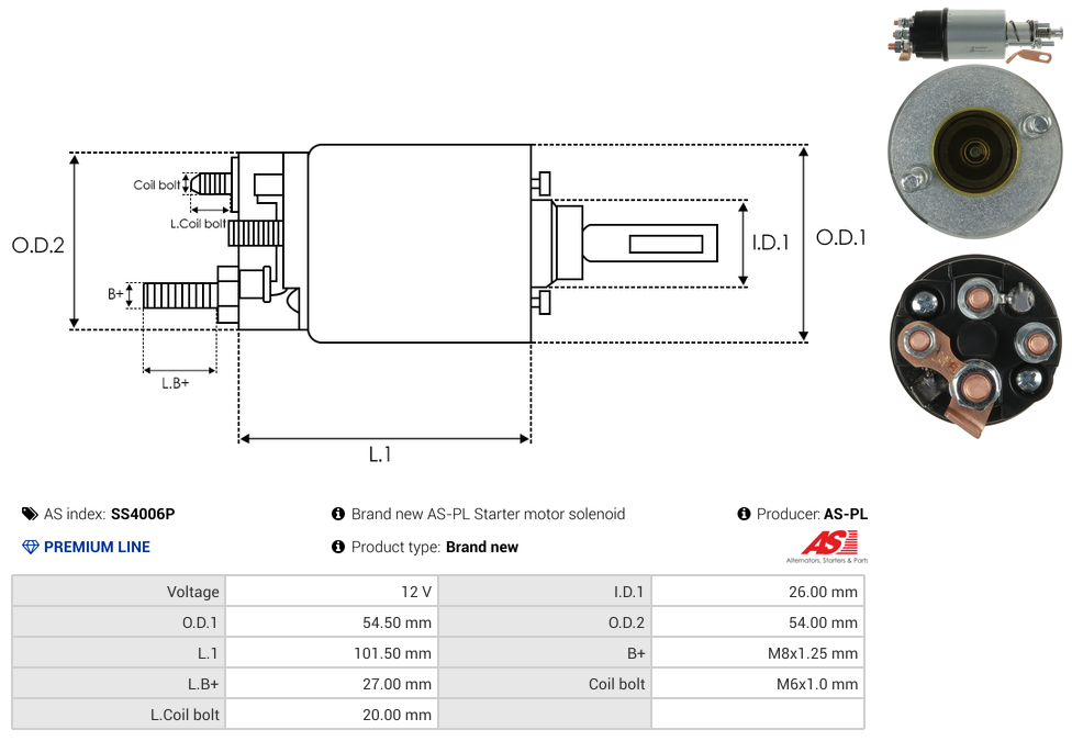 | B+ Stud Diameter & Thread Pitch (B+) | M8x1.25 mm |