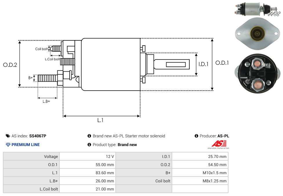 | B+ Stud Diameter & Thread Pitch (B+) | M10x1.5 mm |