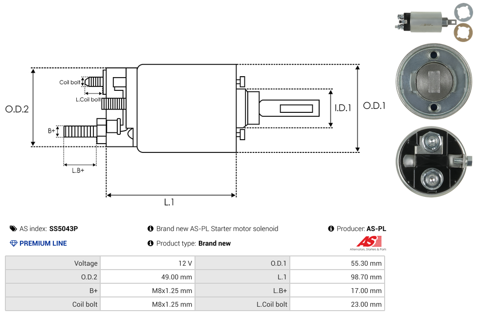| B+ Stud Diameter & Thread Pitch (B+) | M8x1.25 mm |