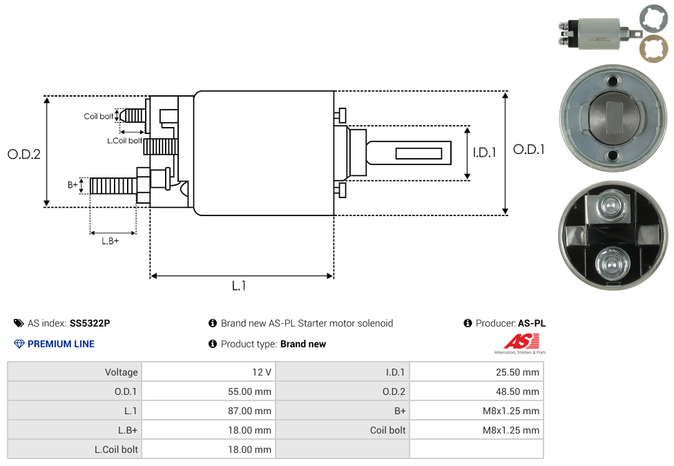 | B+ Stud Diameter & Thread Pitch (B+) | M8x1.25 mm |