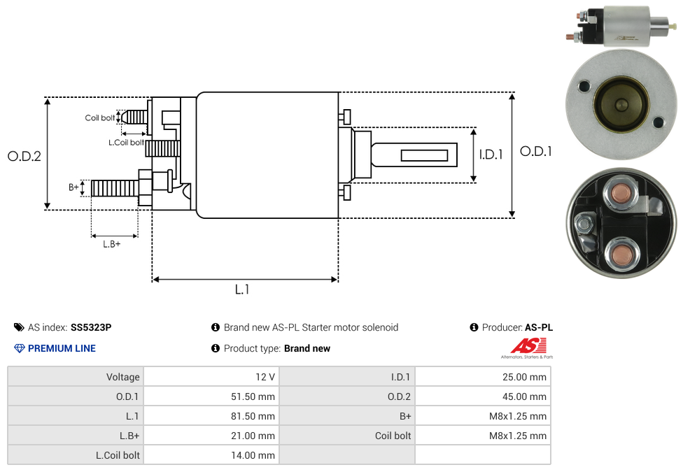 | B+ Stud Diameter & Thread Pitch (B+) | M8x1.25 mm |
