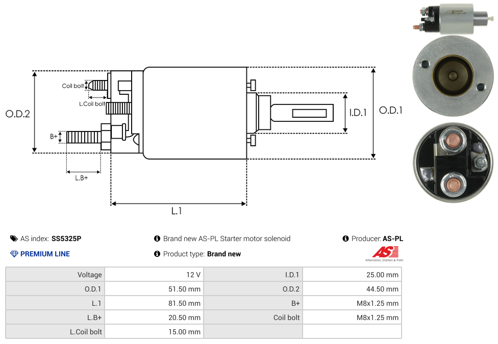 | B+ Stud Diameter & Thread Pitch (B+) | M8x1.25 mm |