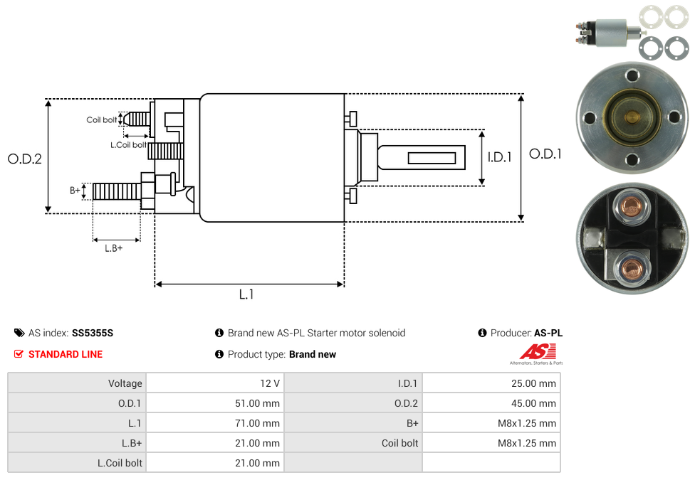 | B+ Stud Diameter & Thread Pitch (B+) | M8x1.25 mm |
